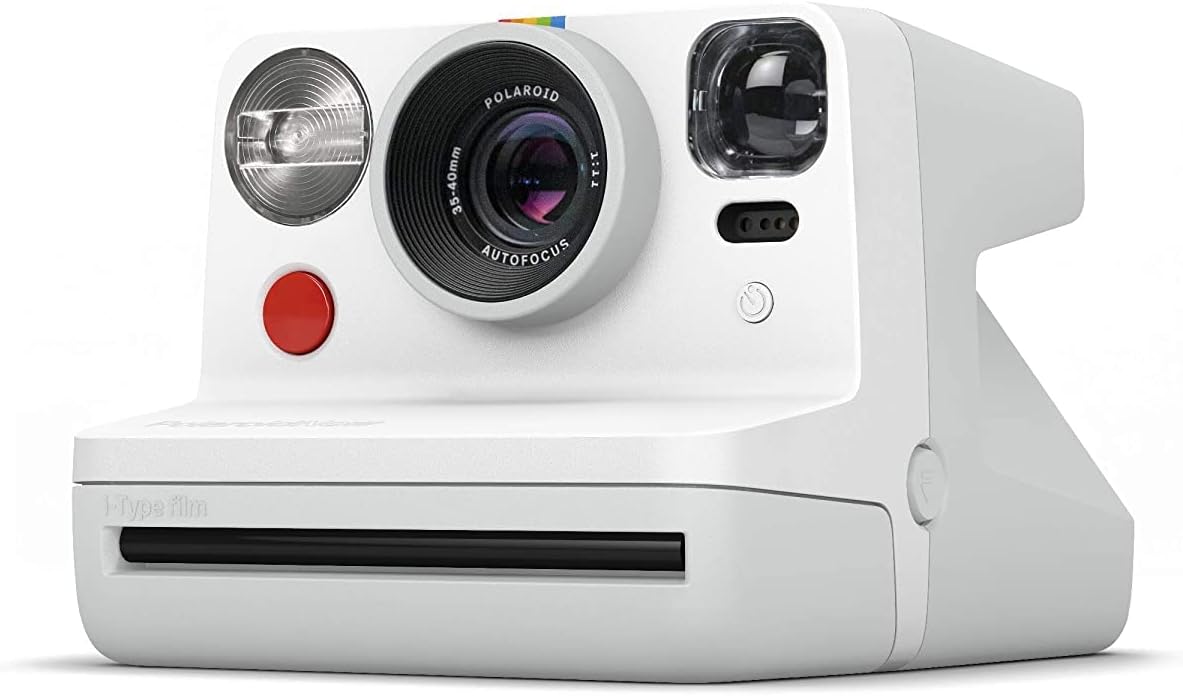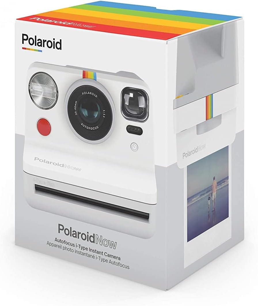 Polaroid NOW White is a modern analog instant camera in white, created by analogy with classic instant print cameras and combining a classic large square frame and a design inspired by polaroid cameras of previous generations.